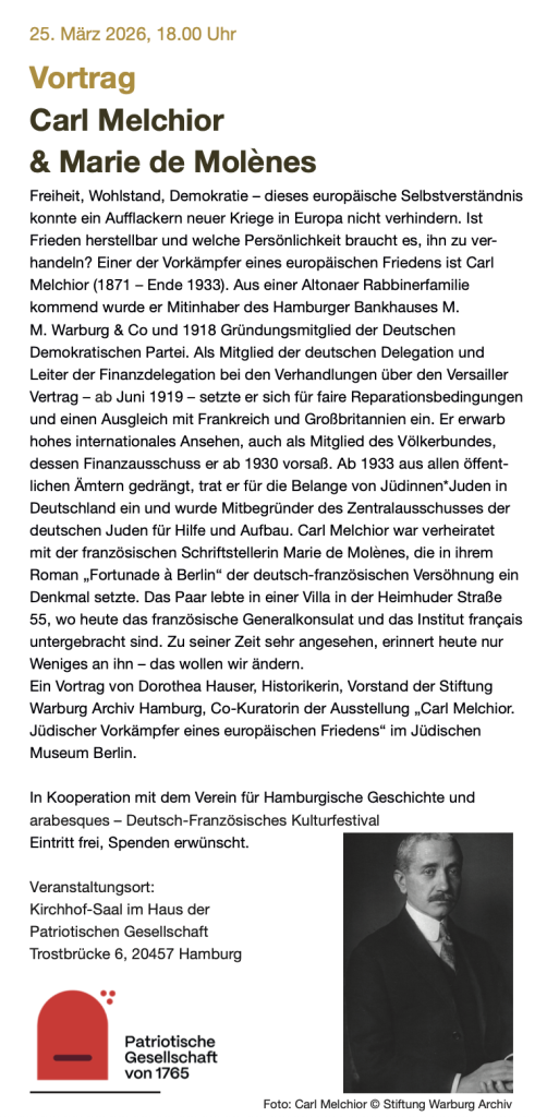 Dr. Jürgen Bönig, Sozialhistoriker, führt durch das ehemals jüdisch geprägte Viertel, mit französischer Übersetzung – für die Audio-Guide-Anlage bitte Kopfhörer mit 3,5 mm Klinkenstecker mitbringen und anmelden (hamburg-tempel@gmx.de) (wenn Sie nichts anderes hören, gilt Ihre Anmeldung als angenommen!).